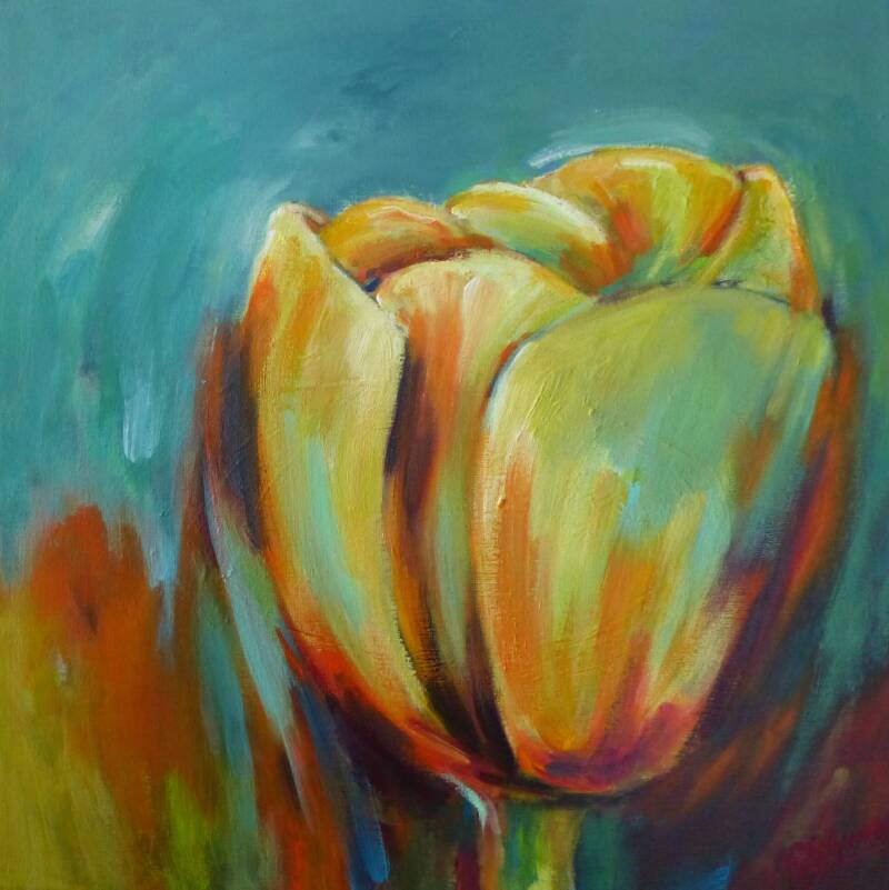 De tulp is voor mij een geliefde bloem en iedere keer als ik deze schilder is het weer een verrassing hoe het eindresultaat eruit ziet.